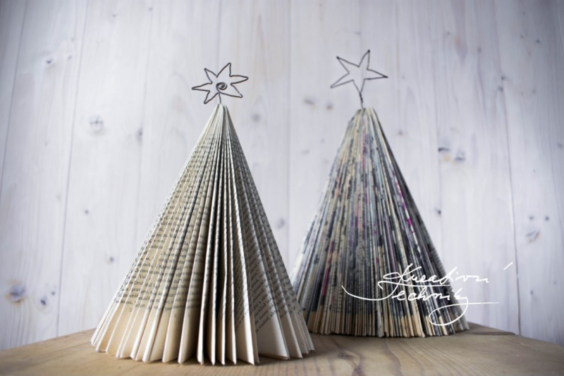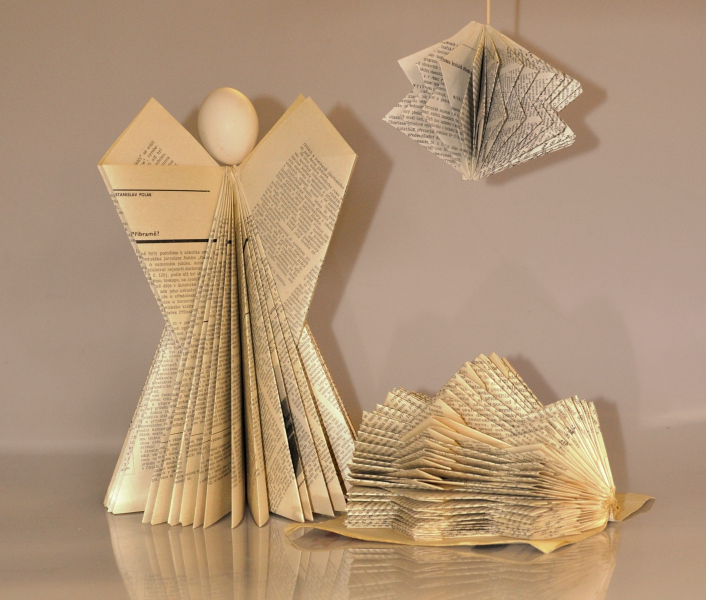 – jednoduchým pravidelným skládáním stránek staré knížky nebo časopisu vytvoříte anděla, vánoční ozdobu nebo jinou prostorovou dekoraci vhodnou do vánočního zátiší na okně.